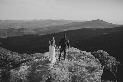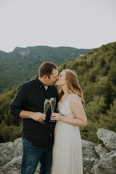 This couple came to me as a referral from the bride's sister, whose wedding I photographed last year. I absolutely adore this family, and was beyond honored when they came back to me in hopes of photographing another wedding. We took off to the NC mountains for their engagement session, which is a meaningful spot to the couple, and a place where they take their pup for hikes. It was a beautiful evening, with the most scenic backgrounds and the cutest of love.