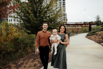 Fall colors were showing off this night, as I walked around The Bowl with one of my favorite families, trying everything to get a smile out of baby Sloane. Those were slim pickin’s, but leaf hunting, mulch crawling, and pineapple snacking were the hits of the night. This was a lifestyle session classic, as a Charlotte family photographer.